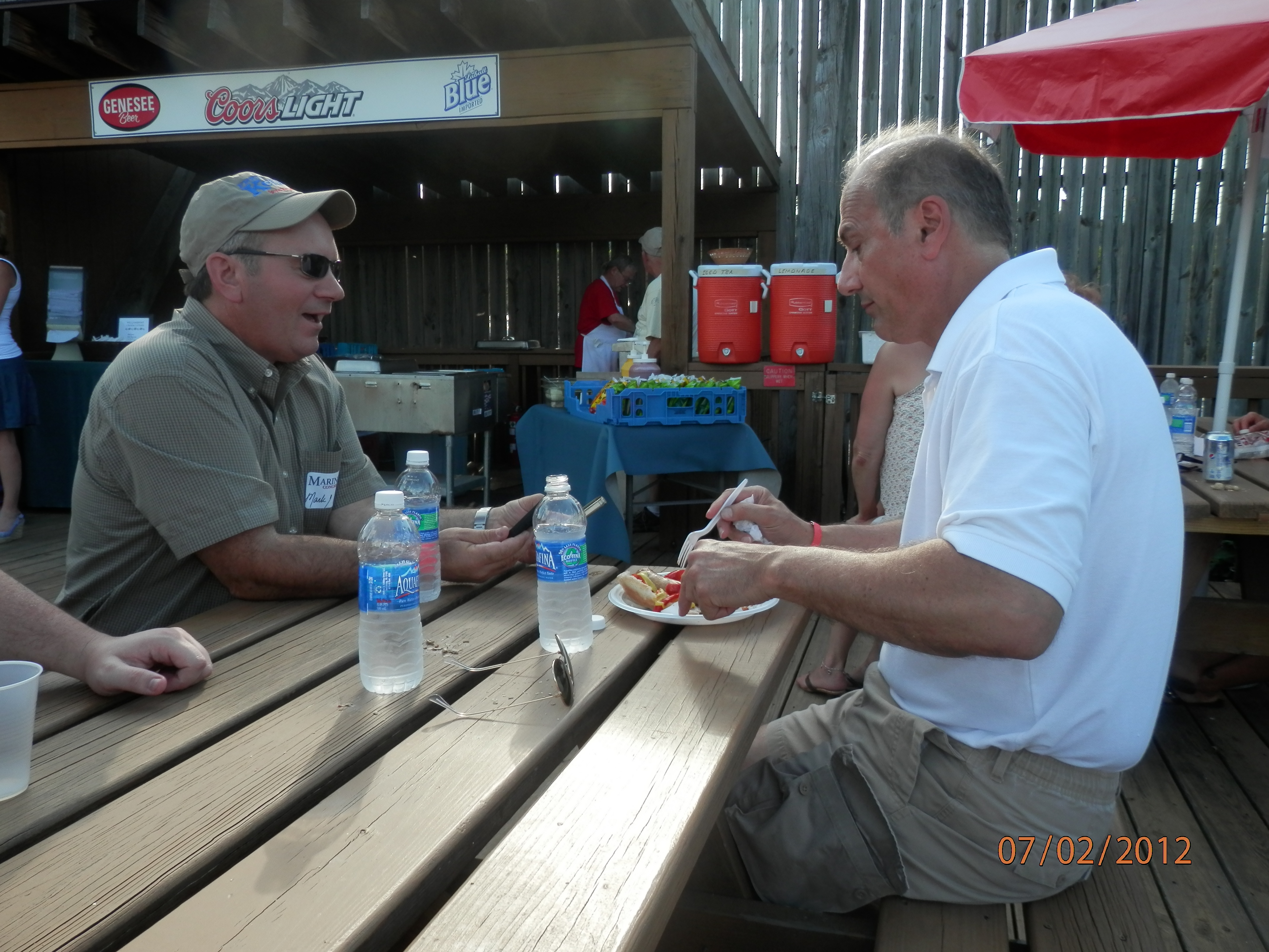 Mark J. Harris, Delegate to the National Republican Convention and Tom Marino, Congressman to the 10th Congressional District discuss issues at Tom’s fundraiser at the Crosscutters baseball game.