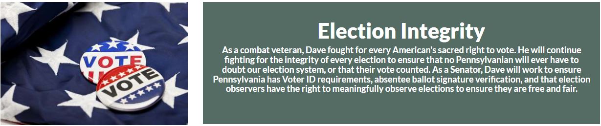 Dave McCormick, Candidate for US Senate, will fight to restore Election Integrity