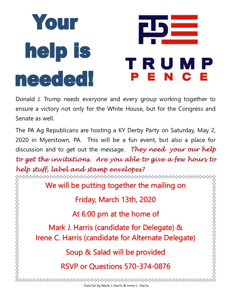 Looking for something to do tomorrow? Join the PA Ag Republicans for a KY Derby Event.