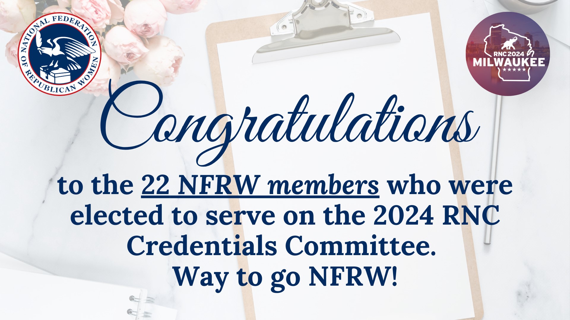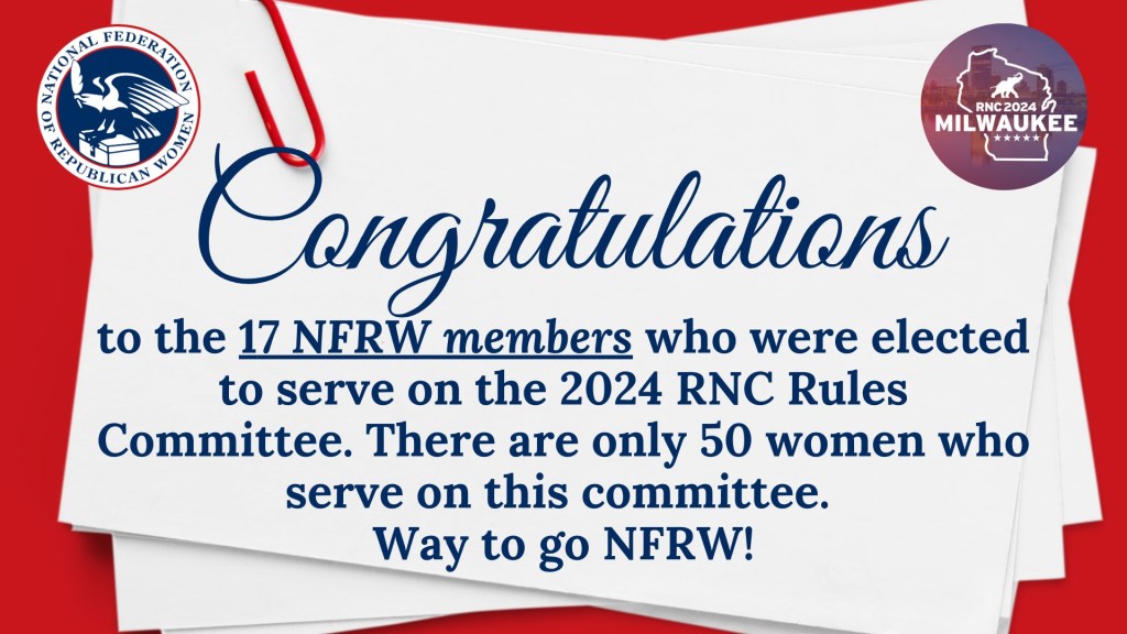 NFRW making a difference. 17 of 50 members of the Republican National Committee’s Rules Committee are National Federation of Republican Women Members.