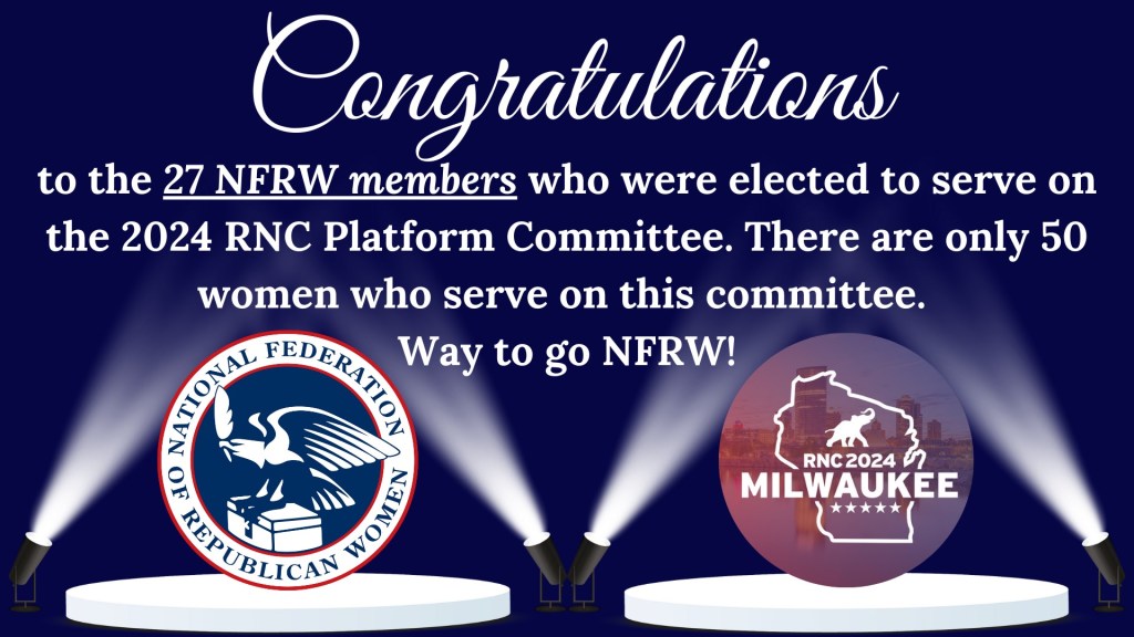 NFRW making a difference in the Party. 27 National Federation of Republican Women will serve on the Republican Platform Committee; setting the Party’s Platform for the next four years.